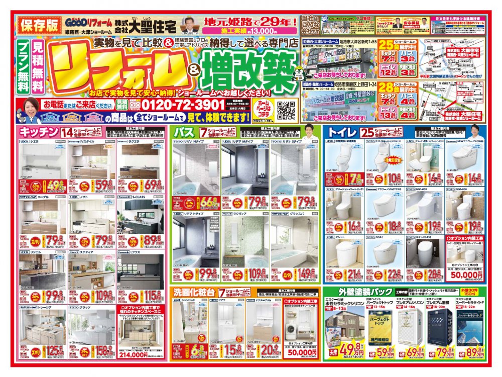 姫路市リフォーム//リフォーム 姫路市//キッチンリフォーム//お風呂リフォーム//姫路 キッチン//リフォーム トイレ//和室 リフォーム//洋室 リフォーム//LDKリフォーム//姫路市リフォーム会社//リフォーム会社//大聖住宅//姫路 GOODリフォーム//バスリフォーム//洗面台リフォーム//姫路市//姫路 修理//姫路 下水道工事//リフォーム 口コミ//姫路 リフォーム 見積もり//姫路 見積もり//姫路市 リフォーム//無料 姫路 見積もり リフォーム//改装//住宅改修//新築//増改築//内装//カーテン//ブラインド//塗装//畳//たたみ//タタミ//フローリング//電気工事//オール電化//エコキュート//エコフィール//ガス給湯器//お風呂 給湯器//大聖住宅//コイズミ//証明//水栓金具//水洗トイレ//便槽//浄化槽//給湯器//窓//扉//建具//塗料//自社職人//左官工//水道管//水道 お湯//壊れた//商品//SK//UB//タイル//お風呂//寒い//冷たい//安売り//%OFF//値下げ//展示現品//ショールーム//TOTO//ノーリツ//YKK//INAX//LIXIL//DIY//タカラ//クリナップ//三菱//パナソニック//ダイワ//簡易水洗//台所//外壁//屋根//塗装//暖かく//部品交換//急ぎ//姫路市内//GOODリフォームショールーム//
