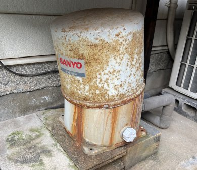 長く使っていた井戸水のポンプが、とうとう水漏れしだして取替えてもらうことにしました。