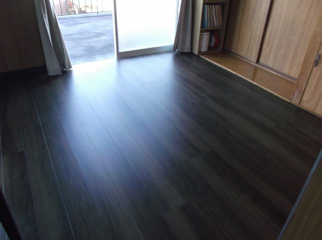 以前にリビングの内装工事をさせていただきましたT様、設計士さんです。プロからの依頼はうれしいですね。今回は2Fのピアノがあるお部屋で表面が強いフローリングの方が良いと判断し前回と同じようにPanasonic ベリティスフロア-Sハードコート貼りで施工させていただきました。シックな色でお部屋の雰囲気もガラッと変わりました。今後ともよろしくお願いいたします。