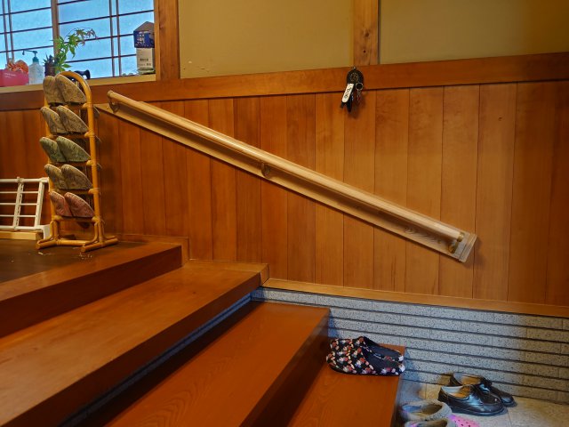 敷居が高いのでつまずきそうで危ないことから、敷居を撤去して安全な玄関にリフォームさせていただきました。併せて玄関の框が高い位置にありますので敷台を新設し使いやすい玄関にすると同時に手摺も取り付けて安心してすごしていただける玄関になったと思います。今後とも末永いお付き合いお願いいたします。
