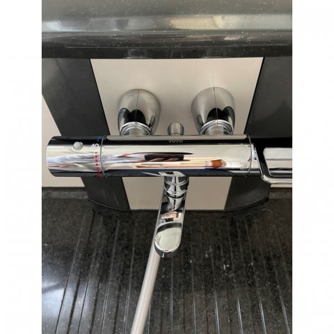 当初トイレの取替えのみだったのですが、この際に気になる箇所を一緒に見させていただき、トイレはPanasonicのアラウーノV、トイレの換気扇は同じタイプのもので取替え、浴室水栓も調べさせていただき取替え可能だったのでご案内させていただきました。浴室折れ戸はメーカーに問い合わせたところ廃盤になっていたので、カバー工法での施工をお勧めさせていただきました。