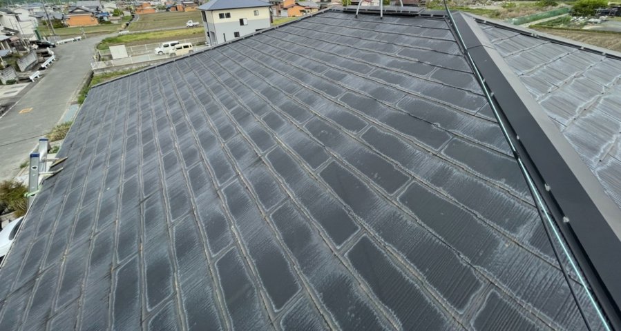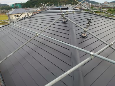 この度は大聖住宅にご相談、ご依頼ありがとうございます。今回ご相談いただいた内容は、外壁と屋根のメンテナンスとこの機会に給湯器(エコキュート)を取り換えしようと考えられているとのご相談でした。屋根、外壁は両方塗装とのご要望でしたが、実際に屋根点検させていただくと現状カラーベストでしたが、ひび割れ、浮き、欠けなど腐食が多くありました。塗装と言う選択肢もございましたが、カバー工法と言う施工方法もご提案させていただきました。自社ショールームにて実際に現状と商品、施工事例などもご覧いただき、ご納得いただきこの度はカバー工法をお任せいただくことになりました。今後のライフスタイルやご年齢等も加味されてのご決断でした。季節柄良い秋口での施工とさせていただきました。色合いも、仕上がりもお喜びいただけてよかったです。又お困り事、ございましたらいつでもご相談くださいませ。