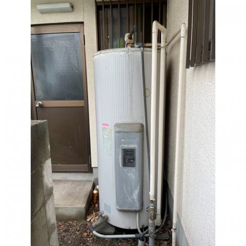ご連絡頂き、お客様のご自宅にお伺いさせて頂きました。電気温水器を30年使われてきたとの事で点検させて頂き、電気温水器の本体から微量ですが水漏れしていました。