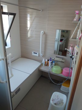 この度は大聖住宅にご相談、ご依頼ありがとうございます。ご来店時の対応にもお喜びいただけて本当に良かったです。T様ご自宅は店舗兼住宅の鉄骨造の建物で2階に住居があり、その2階のシステムバスの取り換え、洗面所の内装工事、キッチン水栓、和室の内装工事などをお任せいただきました。少し特殊な納まりなどもありましたが、きれいに納まりよかったです。商品は浴室に関してはタカラスタンダードのピッタリサイズエメロードをご選択されました。少しでも広くしたいとのご要望にお応えできたのではないでしょうか。