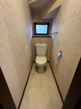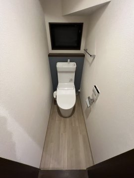 トイレの排水に不具合があるとの事でご相談頂きました。ご自宅に伺い、奥様のご要望を汲みながらご提案致しました。デザインも重視しており、パナソニックのアラウーノVを取り付ました。節水にもなっており、手洗いがしやすい仕様となっております。お掃除もしやすくなったと思います。内装も部分的に背面のみアクセントが入り、綺麗になりました。