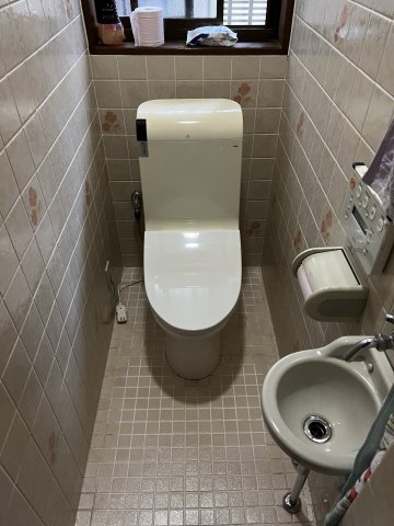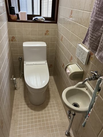 トイレの排水が止まらないとの事でご相談頂きました。現地で奥様とお話して、15年以上使っていてお取替えされたいとの事でTOTOのZR1を取り入れました。お掃除しやすく、標準でウォシュレット機能が使えるモデルになりました。リモコンも以前より見やすく、水漏れもなくなり安心してお使い頂けると思います。洗面台はTOTOのサクアを取り入れ、陶器仕様のモデルに拘りお選び頂きました。壁水栓で汚れも付きにくい水栓です。洗面ボウルも深くなっており、とても使いやすいモデルになっております。