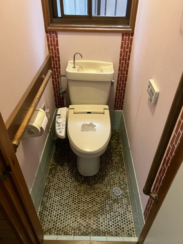 以前にもお世話になりましたA様、今回はトイレが水漏れされているということでお伺いいたしました。トイレの奥の床のタイルが確かに濡れており、トイレ自体も古いことから取り替えをご要望でした。トイレ内の手摺や敷居の段差があるところから、同じ取替えるなら床をあげられてはいかがですか?その方が安全ですよとご提案。床をバリアフリーにさせていただきました。