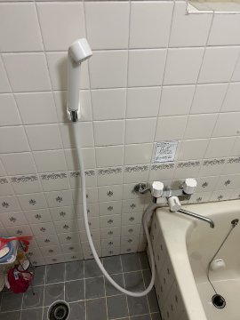 Y様のご自宅の状況としては、浴室の2ハンドルの水栓のシャワーホースからの水漏れがありました。修理でも可能ではありましたが、切り替えのつまみの使いにくさもご不便に思われておりましたので、お取替えとさせていただきました。