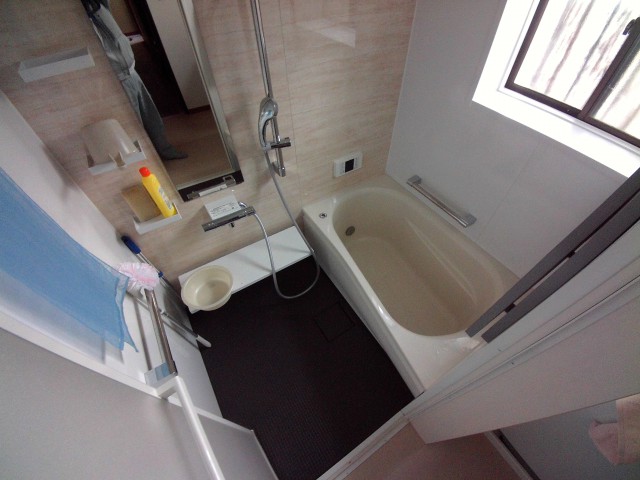 狭く使いにくい浴室・洗面・トイレ・キッチンスペースをお客様の生活スタイルに合わせ少しでも広く使いやすいようにしたい、がメインの工事となりました。浴室はユニットバスで既設の浴室ギリギリの物を選び、洗面との壁を薄くする事で洗面所も少し広くなり、トイレは横にあった収納のデットスペースを取り込み、高齢のお婆ちゃんが少しでも入りやすいようバリアフリーに、広く安全なスペースを確保しました。キッチンは向きを変え、いらない勝手口を塞ぎ冷蔵庫のスペースにし、前キッチン前の出窓下の床を伸ばし、家具の置き場所にし、狭いスペースの中での奥様の動線を少しでも減らせるように工夫しました。