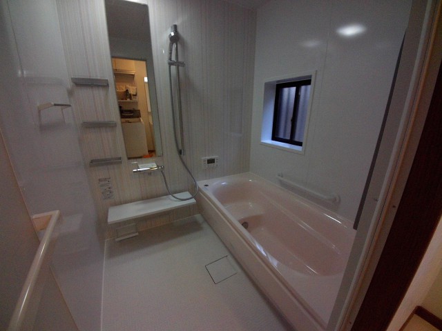 エコキュートは安心の延長保証付、浴室は特に床のお掃除がしやすくなりました。洗面所も壁に工夫をしてお掃除しやすくなりました。今回の工事で全体にお手入れが楽になられたと思います。
