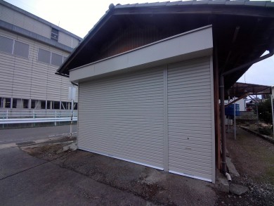 車庫のシャッターが古くなり開け閉めが重いので新しいシャッターに取替させていただきました。今の新しいシャッターは手動でも軽いのですが、車の出し入れの事を考えてリモコンにしました。便利になったと喜んで頂きました。