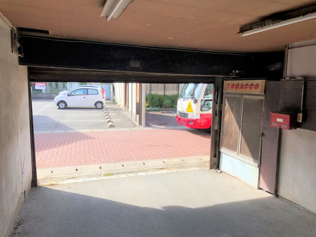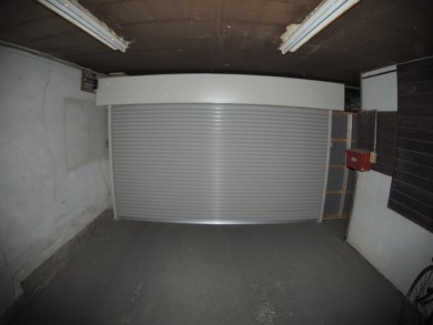 既存の電動シャッターが壊れ、取替ると外壁を解体したり梁も撤去したりと困難な場所に取付けてあるのと、予算の事を考えて既存取付け位置の梁裏に新設する事にしました。