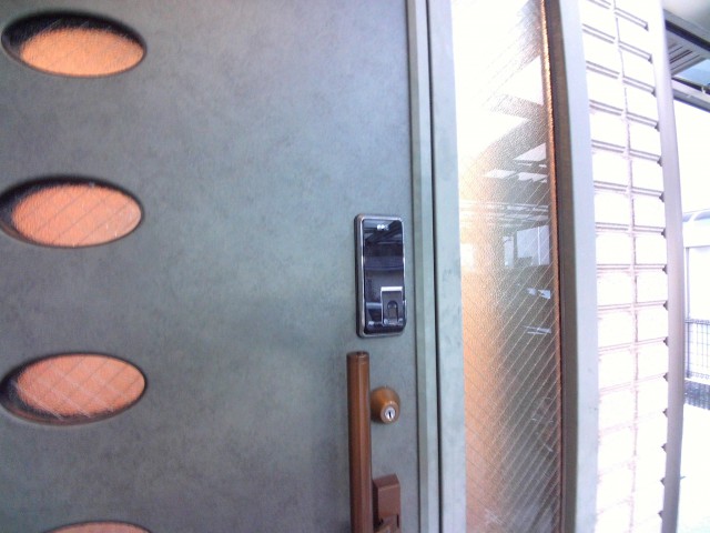 今回付けられた指紋認証錠と同じものを弊社も代理店で扱っておりますが、今回はお客様がちゃんと動くか心配なので、前もって動作確認のテストをしたいと希望され、インターネットで購入し取付を依頼されました。動作は良好でちょっとしたコツをつかめば子供たちでも簡単に開けることが出来ますし、留守がちな方でも安心出来るのではないでしょうか。