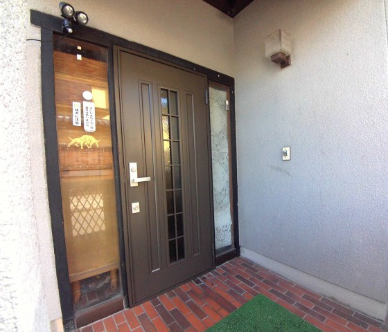 2度目のドア取替となりました。1度目の木製ドアは非常に重く歪みもひどく、開け閉めが大変でお手入れも難しかったと思います。1度目のドアは木製ドアでも内部ドアに少し防水を効かしているようなもので、やはりゆがんでしまい、風が吹いたら勝手に開いてしまったようです。今回はアルミ製のドアとなり非常に耐候性に優れ、過去の木製のドアの様な木の歪みや勝手に開く、防犯性が悪い等が改善されたと思います。工事もドア本体を工場で特寸加工してくるので、工事の時間も少なくて済みます。外壁を解体したり繕ったりの工事もしなくて大丈夫です。その分、金額も安く収まります。玄関は家の顔とよく言われます。毎日使う玄関がキレイになると生活も快適になると思います。