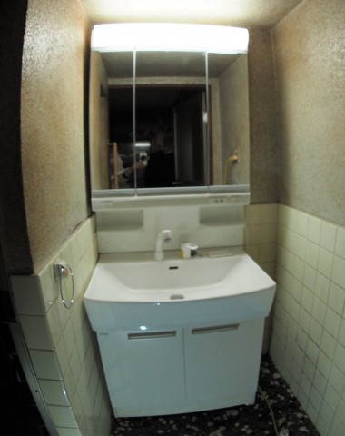 十分に75センチタイプの洗面化粧台が収まりました。