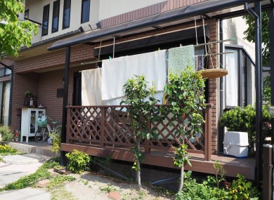 人の目線は奥さまがこれから手摺前に植木を植える事で解消しましょうという事になっています。