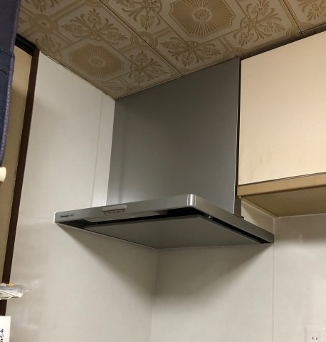 換気をしっかりとれるようにいたしました。レンジフードもスマートフードに取り替えて正面のタイルもキッチンパネルにしてお掃除が楽になったと同時に換気扇も