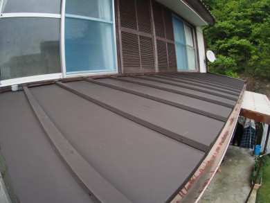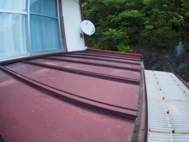 年数も経過していることから、劣化状況も激しく部分的に穴もあいており葺き替えも検討しましたが、出来るだけ費用をかけず長持ちする方法として、今の瓦棒に重ね張りして直す工事を第一にご提案させて頂きました。