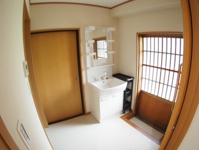 以前よりお世話になっております。今回のご相談内容は元々離れとして使っていた所に新しく浴室とトイレと洗面室を作るという内容でした。これから先々の事を考えて寝室から近くに水廻りを作ってバリアフリーにしておきたいとのご相談もあり、そこからご家族様皆様のご意見、考えをたくさん話ししていただけました。今回重視したいポイントとしてはまずは寝室から水廻りまでの床を完全バリアフリーにする事、畑に出るための出入り口までに動線、浴室の寒さの改善という事でした。すでに築年数が90年近く経っている事もあり代々何度もリフォームを繰り返しているのでかなり高い段差がそれぞれの部屋にありました。寝室からの動線を最優先に床を嵩上げしバリアフリーとしました。出入り口までの動線も洗面室と廊下を兼用し配置する事などで通路としても洗面室としてもうまく配置出来ました。そこで問題になったのが洗面室の寒さは大丈夫なのかと言う事でしたが壁、天井、床に断熱を入れ解消する事が出来ました。浴室の寒さに関してはTOTOさんのシステムバスサザナを選び浴槽、床などに断熱をしっかりつけひんやりしにくい浴室を一番に考えプランを作りました。そういったご不便をたくさんお話していただいた事によって一つずつご不便を解消する事が出来たのではないかと思います。又お母様も帰ってこられた際には喜んでいただけたらすごくうれしく思います。ありがとうございました。
