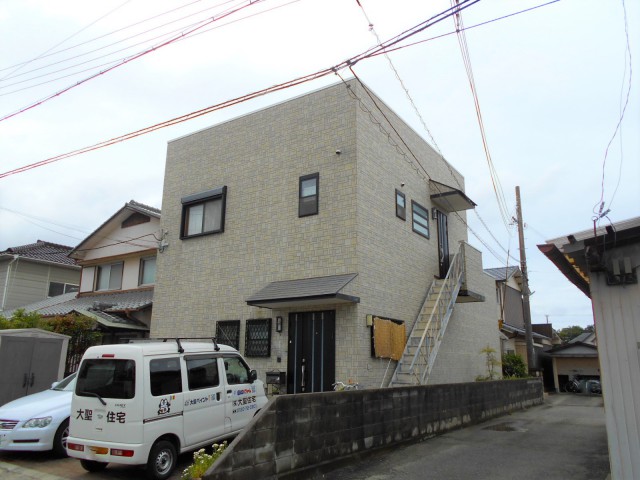 以前に洗面化粧台を取り替えさせていただいたA様、今回は雨漏りするので見に来て、と連絡をいただき、屋上とベランダへ、FRPの防水が経年劣化で傷んでいるのと、ドレン廻りが怪しい感じでした。このさいなのできっちり直しておきたいとA様の要望により、全体に密着工法のウレタン塗膜防水をご提案いたしました。また漏水調査の際外壁のコーキングがかなり傷んでいるのを見かけましたので、こちらも併せて外壁塗装のご提案をさせていただきました。塗料によってコストや寿命が変わりますので3種類のご提案をさせていただいたところ、いちばん耐久性の良い外壁塗装 無機 のSKスーパーセラタイトFをご採用頂きました。メーカー期待対応年数22年の高耐候の塗料ですのでコーキングも通常のものとは違い、高耐久シールSRC-H100を使い外壁の耐久性にあわせた耐久性の良い形としました。