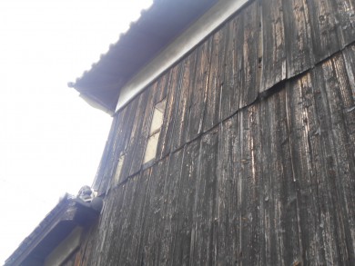 先日の台風で焼き板の一部が飛んでしまい、中の土壁がむき出しになってしまいました。要望通りの直し方で修理していただけました。