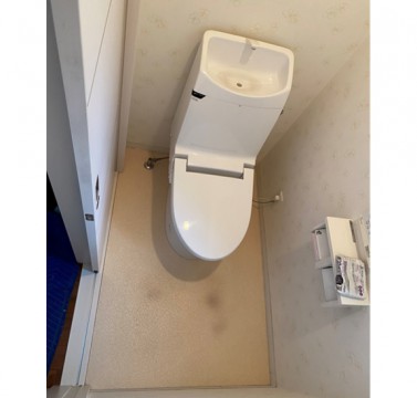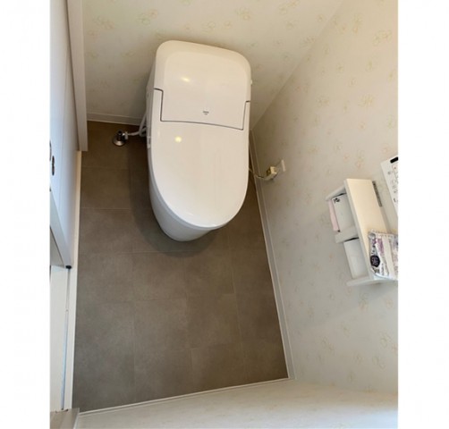 またトイレ床のクッションフロアも貼替えをさせて頂き、トイレに入る空間が変わったと伝えて頂きました。とてもスッキリした空間になり落ち着くトイレ空間になったと感じます。