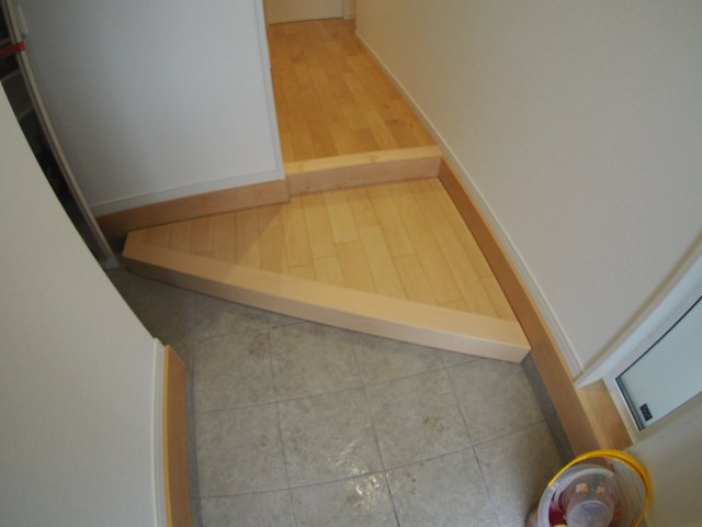 初めてお伺いしてご相談内容をお伺いすると、「玄関を広げたい。」との事でした。どこが具体的に不便ですか?と伺うと階段や、玄関収納のせいで廊下幅(半間)しか框がない状態で、小さいお子さんもいらっしゃるのでこれでは使い勝手が悪いですね、とさらに具体的に込み合うとどうなるのかお伺いして解決策を考えました。大規模に柱を取ってしまって階段を・・・とするとかなり大掛かりな工事になりますので、何か良い方法はないかと知恵を絞った結果がこちらです。狭小住宅や介護リフォームで使う方法ですね。困ったときはいつでも知恵を絞ります。今後ともよろしくお願いいたします。