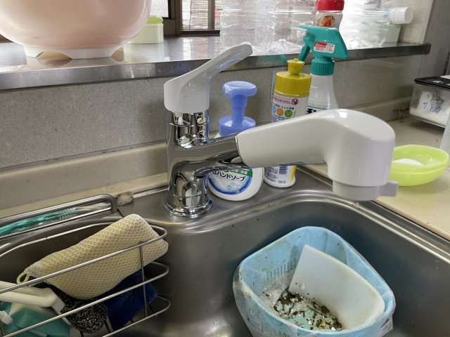 浅見様のご自宅の状況としましては、キッチンの水栓にご不便を感じられているのと、浴室の壁パネルの腐食が気になるとの事でした。キッチン水栓に関しては長く使用され、錆が出てぐらぐらしてしまっている状況でした。現在シャワータイプでないので伸びないと不便と言う事でしたのこの度はシャワーホース付きの水栓をお選びいただきました。浴室はパネルを取り換えすることができないので巾木工法と言う方法でのご提案とさせていただきました。