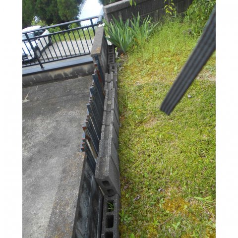 お隣との境界のブロックがずいぶん古くなって傷んできていて、何かいい方法がないかと思っていたところに、たまたまメンテナンスで来てくれたので相談させてもらいました。