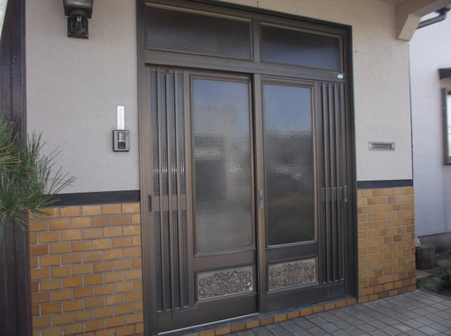 娘様が以前大聖住宅で工事をさせていただいた経緯もあり、大聖住宅をお選びいただきました。現状潮風がきつい場所でもあるのでサッシが白くなってしまっている事、開け閉めが不便になってきてしまったことが、取り替える大きなきっかけでした。玄関、勝手口ともにカバー工法とし、リクシルのリシェントと言うシリーズでのご提案をさせていただきました。デザインも豊富でご自宅に合ったデザインをお選びいただきました。勝手口も採風型と言う風通しの良い仕様の勝手口になりました。毎日の不便が解消することができ本当に良かったです。ありがとうございました。また宜しくお願いします。