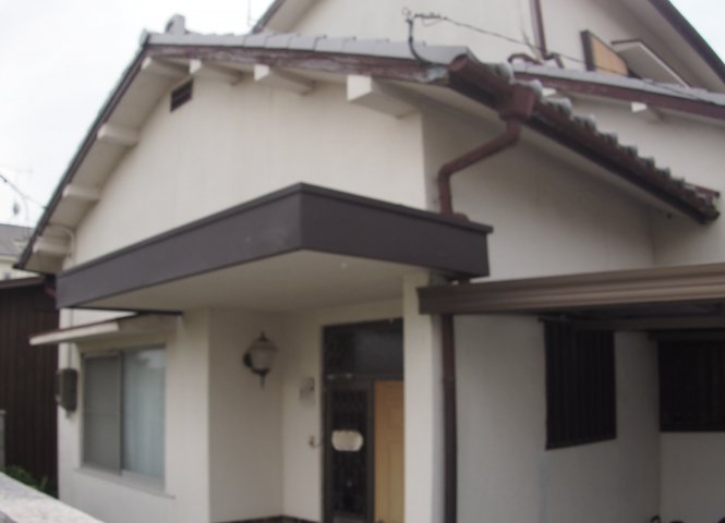 玄関の庇のところが傷んできて雨が入ってきそうなので修理のお願いをしたのと、西側の外壁の波板が傷んできたので張り替えをお願いしました。
