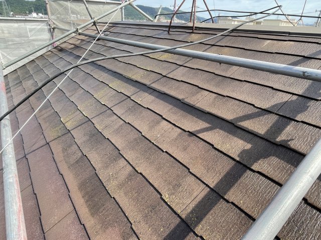 この度は大聖住宅に、ご依頼ご相談ありがとうございます。当初の現状としては、目地のコーキングが取れ、下地が見えている状況でなおかつ、色も変色し、サイディングのそりも出てきている状況でした。屋根に関しては、苔、カビがかなり増殖してしまっている状況でした。この度は先々のイメージもされ、10年後にもう一度塗装もしくは壁の張り替え等検討するというイメージで耐用年数が10年前後の塗料をお選びいただきました。