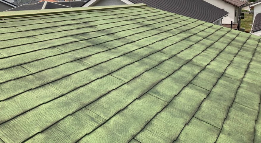 この度は大聖住宅に、ご依頼ご相談ありがとうございます。当初は2階の天井にかなりのシミが出てきている状況でした。築年数は40年以上のカラーベストでひび割れやずれなど多く痛みが出てしまっている状況でした。補修の案なども考えましたが、長い目で見るとどうだろうと考えカバー工法の商品のカレッセもご提案させていただきました。ご予算ももちろん検討されていたより、大きくなってしまっていることもありかなり迷われましたが、ご家族様でお話しされ最後はお任せいただくこととなりました。ありがとうございました。