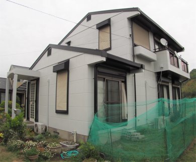 前にトイレ工事させて頂いたI様、1ヶ月点検でお伺いした際に前から気にされていた外壁塗装のお見積りをお伺いいたしました。一部水切りのおさまりの悪いところがありそこの補修も併せてご提案させて頂きました。外壁は今回SKのプレミアムシリコン シリコンベースのハイブリット塗料です高耐候の為お家を長く保護してくれます。また着工前の給水管の凍結による破裂、及び給湯器の取替早くできて何よりでした。