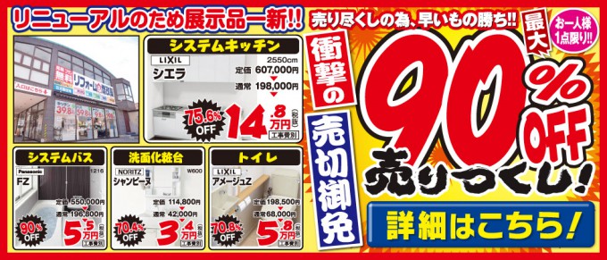 ※全て商品本体価格です。解体・運送費、工事費が別途必要となります。