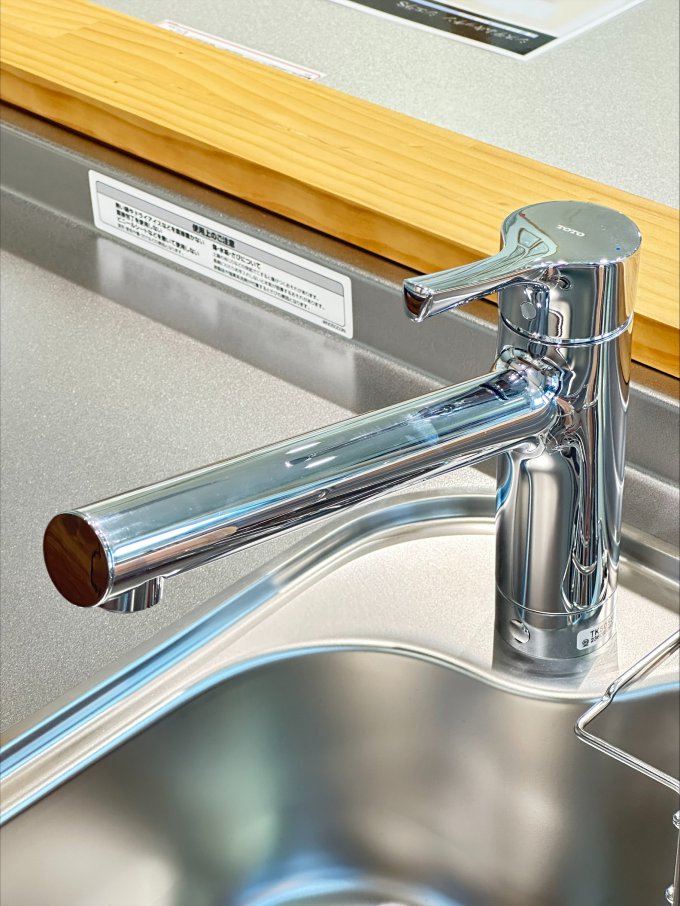カチッというクリック感によって、水とお湯を使い分けることで無駄なガスの使用を防ぐことができる水栓です。