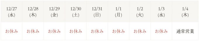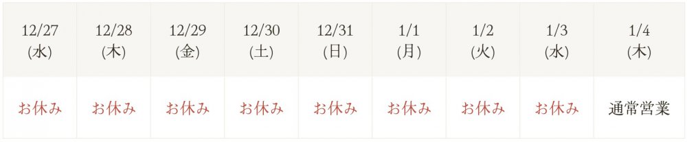 弊社では下記の期間を年末年始休暇とさせて頂きます。