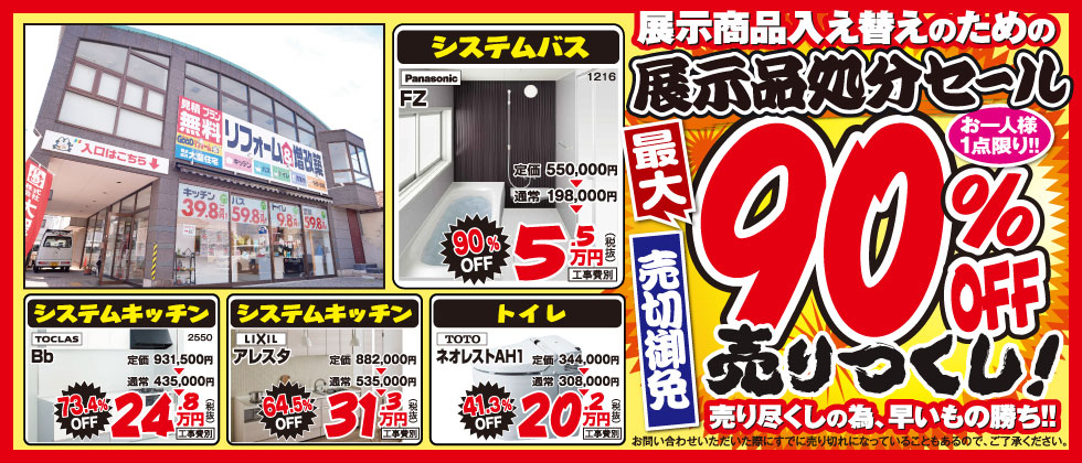 ※全て商品本体価格です。解体・運送費、工事費が別途必要となります。