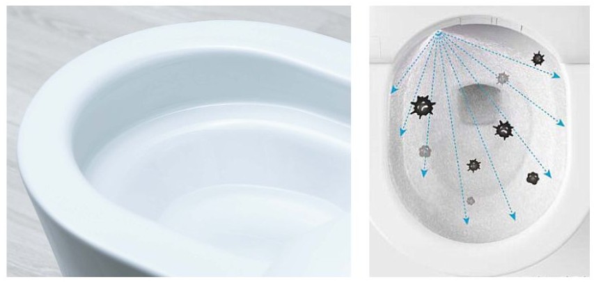 ネオレストRSには、便器汚れを付きにくくするため水を吹きかける『プレミスト』や、便器の汚れが溜まりやすいフチがない『フチレス形状』といった、トイレを綺麗に保つ機能が標準搭載されています。